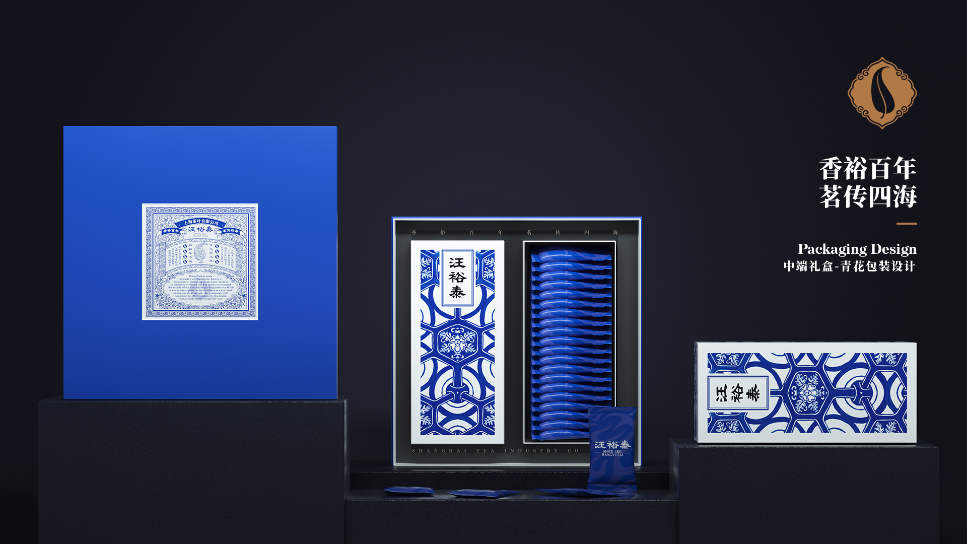 汪裕泰經典青花瓷系列包裝設計靈感來源自青花瓷紋搭配瓷白,其核心價值在于品牌的百年歷史+國際觸角。通過溯源品牌根基、梳理品牌沿革、發展品牌新風,將高中低產品包裝賦予不同的品牌視覺傳導,兼具復古與時尚感,并以高端產品建立品牌美譽度。