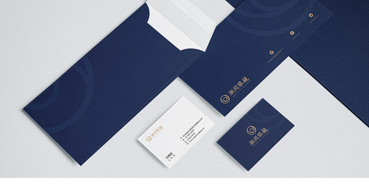 本次品牌設(shè)計靈感來源于“潮”,將潮閱眼鏡的縮寫“C”與“浪”相結(jié)合構(gòu)成品牌徽標,標志以圓作為基本形態(tài),代表太陽,象征著希望、生機和光明,同時標志也形似眼睛。色彩上選擇代表光明、雅致的香檳金色,沉穩(wěn)的亮咖棕色來突出視覺效果,營造簡約、高端的品牌形象。