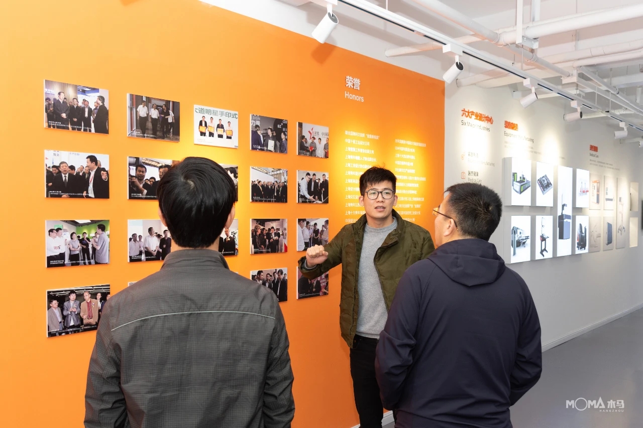 木馬設計許瀟驀先生接待此次到訪的寧波市鎮海區文化和廣電旅游體育局一行人。并為到訪領導著重介紹木馬設計協同體系的重要內容以及杭州木馬聯龍工業設計中心的園區定位和多元化服務配套。